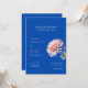 Infuse your wedding day with romance and elegance using this exquisite invitation. A captivating watercolor-style chrysanthemum in soft pinks and whites is nestled on a dark blue canvas, creating a striking visual contrast. The flowing script for the names evokes a sense of personal warmth and affection. This design is ideal for couples who appreciate artistic details and a refined aesthetic for their wedding announcements. All necessary details, RSVP instructions, and website information are clearly presented.
