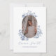 Celebrate your graduate with this modern and refined blue graduation photo announcement card. Featuring a stylish script overlay on a black and white photo, paired with delicate floral accents, this design creates a clean and timeless look.
