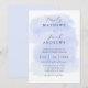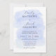 This is a modern wedding invitation featuring a refined blue watercolour texture reminiscent of clear blue water inspired by coastal themes. Elegant typography is highlighted by this unique design. Customise this template with your unique information and personal touch.