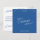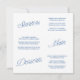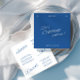 An elegant wedding menu card featuring a beautiful handwritten script on a clean white front, paired with a rich blue back with all courses listed for your guests. All text blocks are fully customizable — edit the names, date, location, and each menu section to match your wedding. Part of the coordinated wedding collection "Florence" — explore matching pieces across the full suite. Mockups for this design were created using Midjourney AI.