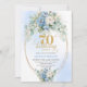 This 70th birthday invitation is beautifully produced with Zazzle’s premium professional printing, designed to showcase every detail of the watercolor artwork. Soft dusty blue and white peonies are printed with smooth, painterly gradients, while eucalyptus greenery appears fresh and natural. Subtle gold accents remain crisp and refined, adding an elegant touch without overwhelming the design.