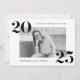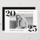 Invite a los huéspedes a su fiesta de graduación con estas modernas y audaces invitaciones a la fiesta de graduación de 2025, que presentan un diseño elegante con su foto horizontal enmarcada en blanco y "2025" con letras en negrita y moderna en las esquinas superior izquierda y inferior derecha. Personalice el frente con el nombre del graduado y la escuela, mientras que la parte posterior muestra los detalles de su fiesta de graduación en texto blanco contra un sólido fondo negro para un aspecto elegante y contemporáneo. Perfecto para graduados de secundaria o universitarios, estas invitaciones a graduación de personalizados marcan la pauta para una celebración inolvidable.