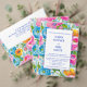 Bright strokes of electric pink, modern cobalt blue, sunshine yellow, teal, coral, and fresh green create a lush, energetic botanical frame that instantly sets the tone for a bold, elevated celebration. The center panel remains crisp and clean, allowing your text to stand out within a beautifully structured layout. Paired with a classic serif font in vibrant cobalt blue, your names and wedding details appear polished, elegant, and easy to read—striking the ideal balance between bold artistry and timeless sophistication.