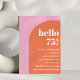 This birthday invitation features a bold pink and orange colorblock design paired with modern serif typography for a joyful, celebratory look. The large “Hello 75” headline makes a confident statement, while the clean layout keeps all party details easy to read. Ideal for a milestone birthday that feels stylish, upbeat, and thoughtfully designed. Personalize the name, date, time, and location to create a memorable invitation for a 75th birthday celebration.