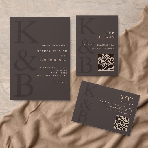 Invitación Modern Brown Monogram Minimalist Wedding
