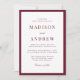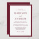 Celebrate your wedding day with this modern burgundy border wedding invitation, featuring a rich burgundy frame that adds warmth and timeless elegance to a clean, minimalist layout. The deep burgundy border creates a refined contrast against the white background, while classic serif typography and a subtle script accent lend a polished, sophisticated feel. Well-suited for formal ceremonies, traditional venues, and modern classic celebrations, this invitation offers a versatile foundation that feels both elegant and enduring. Personalize the wording to create a cohesive invitation that sets a confident and elevated tone for your wedding stationery suite.