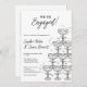 Celebrate your love story with this chic and minimal champagne tower engagement invitation. The front features a hand-drawn stack of bubbly coupe glasses in black linework, paired with stylish calligraphy and serif fonts. The back showcases three photo slots to add your favorite engagement memories, creating a personal, elegant touch. Ideal for modern couples planning a cocktail soirée, rooftop celebration, or classy dinner party.
