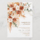 Celebrate your special day with this exquisite Modern Elegant Rustic Terracotta floral wedding Invitation. Featuring a stunning watercolor design of pampas grass, eucalyptus leaves, and bold burnt orange roses, this invitation captures the essence of a fall wedding. The bright, boho floral elements and terracotta tones create a warm, inviting ambiance perfect for any seasonal celebration, including spring, summer, and fall. With its elegant calligraphy and simple minimalist design, this invitation blends modern sophistication with rustic charm. Personalize this beautiful invitation to reflect your unique style and charm your guests with its timeless elegance.