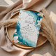 This wedding design features flowing watercolor waves in soft turquoise and deep ocean blue, accented with delicate seashells, starfish, and subtle gold details. The organic brushstroke layout creates movement and elegance while keeping the overall look light, modern, and refined.
