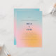 This wedding invitation has a soft, dreamy gradient background that moves from blue at the top through pink and into warm yellow at the bottom, with the couple's names in bold blue type front and center. The back includes a QR code for easy online RSVPs — a modern touch guests will actually appreciate.