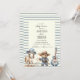 Yeehaw! Saddle up for a rootin' tootin' good time with these adorable cowboy-themed baby shower invitations! Featuring a charming watercolor illustration of a teddy bear dressed as a cowboy and a sweet pony, this design is perfect for celebrating a 'First Rodeo.' The soft blue and cream color palette with subtle stripes adds a touch of rustic elegance, making it a memorable way to invite guests to honor the mom-to-be. This invitation sets the perfect tone for a fun-filled baby shower, ensuring your guests are ready for a Western adventure!