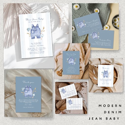 Invitación Modern Denim Blue Jean Baby Shower