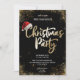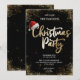 Modern Elegant Glitter Christmas Corporate or Family Party Invitation with golden typography and Santa's cap
