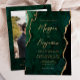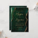 This elegant wedding invitation features a background image of emerald green watercolor agate trimmed with faux gold glitter. The customizable text combines gold-colored modern handwriting, copperplate and italic fonts. On the reverse side, easily replace the sample image with a photo of the future bride and groom, and add a few lines of additional information such as your wedding website URL.