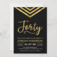Invitación moderna de 40 años con un elegante chevron geométrico y la palabra "cuarenta" en oro falso contra un fondo negro. La tarjeta incluye un patrón de correspondencias en la parte posterior. Consulte los elementos coincidentes aquí http://www.zazzle.com/collections/modern_faux_gold_chevron_celebration_collection-119531050277382712?rf=238364477188679314 Personalícelo reemplazando el texto del marcador de posición para agregar su información. Para obtener más opciones, haga clic en el botón "Personalizar". *Tenga en cuenta que la marca de agua Zazzle que aparece en la vista previa del zoom NO aparecerá en el producto impreso final. © Rosewood y Citrus