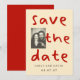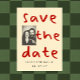 A playful and modern photo save the date featuring bold scribble-style typography and a customizable couple photo.