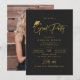Black and gold simple graduation invitation with modern hand written signature script and hand drawn grad cap, personalized photo on the back, simple and unique. Custom it with your own photo and grad party information.