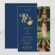 Invitación Modern Graduate Collage 3-Photos Navy Blue & Gold