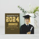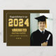 Lindo Modelo de Invitacion de Graduado con estilo de graduado de secundaria con esta invitación de graduación con 1 foto e invitación de fiesta. La tarjeta muestra 1 foto del Graduado con un diseño simple y masculino con letras inspiradas en jersey deportivo. Los colores Marron obscuro y dorado, hacen de esta invitacion una linda invitacion elegante para tu graduacion de Hombres o Mujeres **Consejo de fotos: recorta tu foto en una forma Rectangular antes de subir.