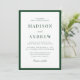 Set a refined and classic tone for your wedding with this dark green photo wedding invitation, featuring a rich green border and a sophisticated blend of serif lettering with calligraphy script accents. The couple’s names are presented in elegant serif type, while the script details add a soft, romantic contrast. The back of the invitation displays your vertical engagement photo framed by the same deep green border, creating a cohesive and polished look that feels timeless and well-suited for estate, formal, and nature-inspired celebrations.