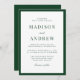 Celebrate your wedding day with this modern green border wedding invitation, featuring a bold dark green frame that adds depth and sophistication to a clean, minimalist layout. The rich green border creates a refined contrast against the white background, while classic serif typography and a subtle script accent lend a timeless, elegant feel. Designed to suit formal ceremonies, modern celebrations, and classic venues alike, this invitation offers a polished foundation that complements a wide range of wedding styles. Personalize the wording to create a cohesive invitation that sets a confident and elevated tone for your wedding stationery suite.