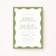 This wedding invitation features a clean white center framed by a soft green wavy border for a fresh, elegant garden-inspired look. The flowing wavy frame adds an organic, modern feel while keeping the layout minimal and refined. The green and white color palette creates a calm, natural style that works beautifully for outdoor and garden weddings.