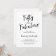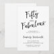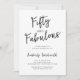 Fifty and Fabulous script minimal black and white modern 50th birthday invitation that you can personalize and send out for your fiftieth birthday party celebration. The words "Fifty and Fabulous" are set using popular script font typography.