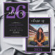 Modern and chic, this graduation party invitation combines classic black and white with accents of bright purple. It's minimal design is a simple and fun design to celebrate the graduate's big day. The back displays your graduate's favorite photo. Created by Simply Farmhouse Press.