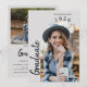 Celebrate in style with these modern and trendy silver-grey graduation invitations celebrating the class of 2026. Add your personalized information and 2 photos of choice on the front and back of the card. Great for high school, college, and/or university celebrations.