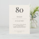 Warm neutral modern typography invitation for an adult birthday cocktail party. Age name date time and RSVP are fully editable so you can change 80th to any age or remove it entirely for a timeless design.