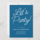 This birthday party invitation features playful script lettering on a blue background for a bold yet elegant look. The flowing typography feels celebratory while staying clean and modern. A versatile design that works beautifully for milestone birthdays, cocktail parties, or festive gatherings.