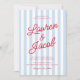 Invitación Modern Minimalist Coastal Red Blue Stripes Wedding
