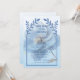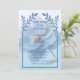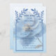 A gorgeous minimalist blue and gold color Poppy adorns the top portion of this wedding invitation.