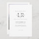The front features a bold interlocking monogram in classic black and white serif typography, setting a refined and modern tone. On the back, a full length photo layout transforms your invitation into a meaningful keepsake, framed with a clean white border for a gallery inspired look.