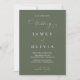 The rich, deep olive green provides a stunning backdrop for your wedding details, featuring refined minimalist typography and subtle script accents for 'The Wedding of'. On the reverse, a dedicated space allows you to showcase your cherished engagement or favorite couple's photo, adding a truly personal touch that tells your unique love story.