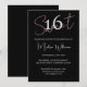 Invitación Modern Minimalist Sweet 16 Black Pink Birthday