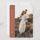 Announce your big day in style with this modern minimalist boho save the date invitation. The front design features space for your favorite photo as a couple, adding a personal and heartfelt touch. A bold vertical terracotta border runs alongside the photo, showcasing your names in elegant cream white serif font, with your wedding date and location displayed below in a refined, smaller type.