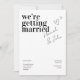 Make a bold, contemporary statement with this modern minimalist save the date invitation. Featuring oversized typography that proudly announces “we’re getting married,” this design embraces clean lines, generous white space, and effortless sophistication. The handwritten-style names add a personal, romantic touch, while the subtle heart accents bring warmth without overwhelming the sleek aesthetic.