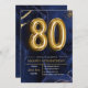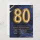 Invitación Modern Navy Blue and Gold 80th Birthday Invitation