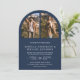 Invitación Modern Navy Blue Arch Photo QR Code Wedding