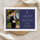 Invitación Modern Navy Blue Cross Boy Photo First Communion