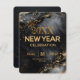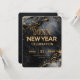 Invitación Modern New Year with Black Marble and Gold Swirls