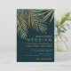 Invitación Modern Palm Gold Teal Tropical Beach Wedding