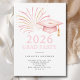 Celebrate your 2026 graduate with this pink and gold graduation party invitation featuring a blush grad cap, gold tassel and sparkling fireworks. A modern, elegant design perfect for a stylish high school or college grad celebration.