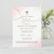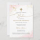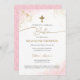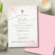 Invitación Modern Pink Gold Cross Girl Baptism Bautizo