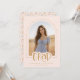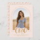 Celebrate your graduate's big achievement with this trendy, double-sided design that combines a stylish announcement with a fun party invitation in a girly aesthetic. The front features a modern blush pink and gold palette with your graduate’s photo cropped into an elegant arch frame, accented by the word "GRAD" in playful handwritten script. The back continues the celebration with a Grad Party invitation surrounded by a whimsical border of hand drawn colorful confetti swirls and stars, topped with a sweet coquette-style bow. This 2-in-1 card is fully customizable, allowing you to easily add your graduate's name, school, class year, and party details for a chic and memorable keepsake. © Kimbellished, LLC