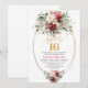 Invitación Modern Red Burgundy Gold Floral Sweet 16 Invite