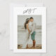 Simple retro minimal design wedding invitation doulble sided with custom photo and wedding logo monogram. Unique elegant handwritten names script. Suitable for spring summer fall or winter modern chic weddings.