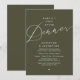 Mark the beginning of your forever with elegance using our romantic contemporary theme wedding reception elopement dinner celebration invitation card, "Happily ever after dinner". Perfect for couples extending their joyous occasion, this invitation exudes sophistication with a hint of playfulness, setting the stage for a memorable event. Adorned with a timeless modern script design, with white text on olive green background, it adds a touch of refined charm to your festivities. Crafted by TeeshaDerrick, this invitation promises to beautifully capture your love story.