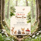 Celebrate a special milestone with this enchanting woodland creatures watercolor invitation. Featuring adorable forest animals like a fawn, squirrel, badger, fox, and a hedgehog on a whimsical mushroom, surrounded by lush greenery and a delicate butterfly. This design is perfect for a magical first birthday party, evoking a sense of wonder and nature. The soft, painterly style adds a touch of charm, making it a memorable keepsake for your little one's big day. Gather your loved ones for an unforgettable celebration in a natural, whimsical setting.